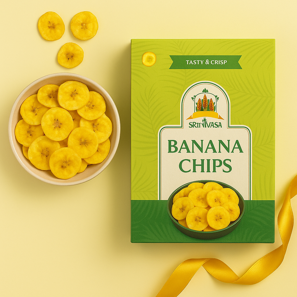 ✨ “Thin, crispy, and perfectly seasoned – the Banana Chips from Srinivasa Sweets & Snacks are a crunchy delight that customers love. Made from farm-fresh bananas and fried to golden perfection, these chips are the ultimate snack for any time of the day. Light, tasty, and addictive, they bring back the authentic traditional flavor that impresses everyone instantly.” ✨